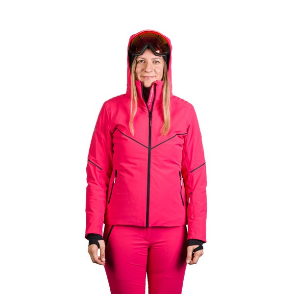 Za večjo varnost na smučišču je bunda opremljena s sistemom RECCO®, ki olajša iskanje v primeru snežnega plazu. Bunda vključuje odstranljivo, nastavljivo kapuco, nepremočljive zadrge ter več praktičnih žepov: dva stranska žepa z zadrgo, žep na rokavu za smučarsko karto, notranji prsni žep z zadrgo in žep za smučarska očala. Predoblikovani rokavi so opremljeni z zadrgami za lažje oblačenje, medtem ko elastične rokavne manšete vsebujejo notranjo gamašo iz lycre. Hrbtna stran ženske bunde pa je dovršena tudi z antibakterijsko podlogo.