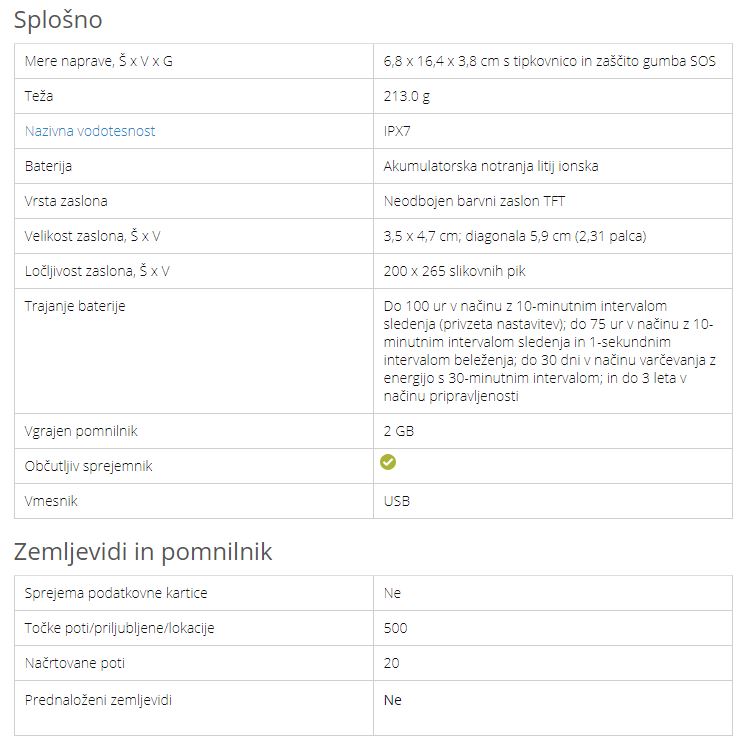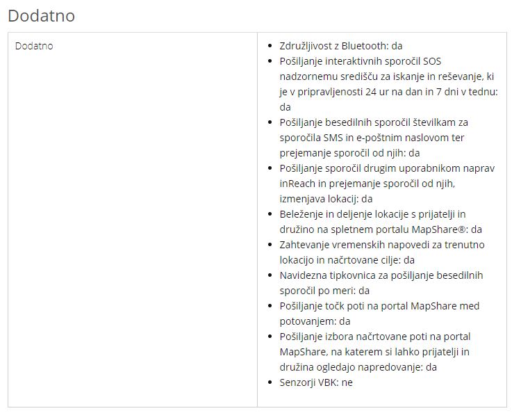 Lastnosti naprave Garmin In Reach SE+