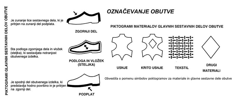Podatki o sestavi obutve prikazani s piktogramom.